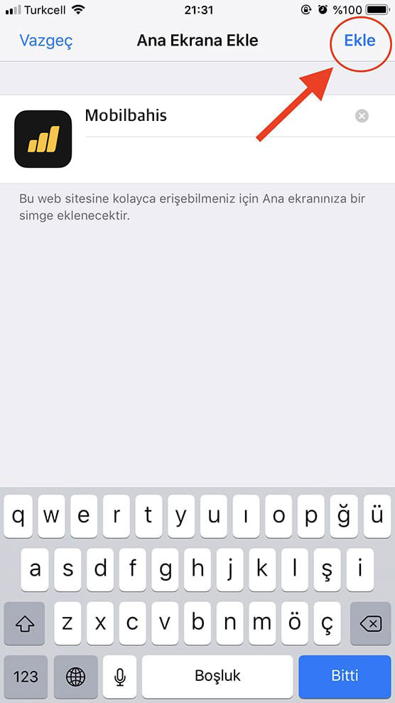 Gelen ekranda bulunan "Ekle" butonuna basın.